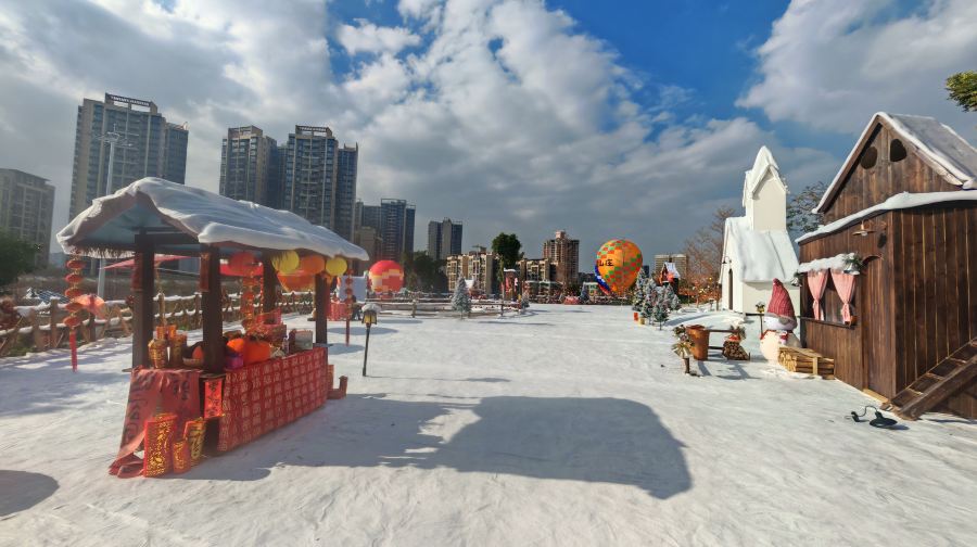 园区内的核心功能区各具特色,错落分布:开阔舒展的大草坪,为休闲休憩、自由活动提供了充足空间;充满氛围感的仿真雪场木屋,自带独特景致,成为园区内极具辨识度的打卡点之一;规整的菜地,可让人近距离感受农耕气息,体验种植与收获的乐趣;平坦的油菜花地与错落有致的油菜花斜坡相互映衬,形成层次丰富的田园景观,兼具观赏性与田园韵味。