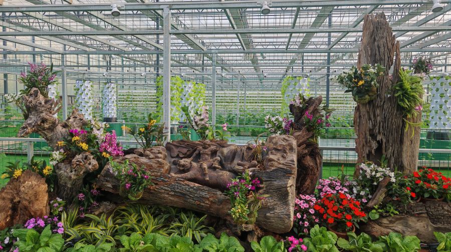 在农耕体验与果蔬观赏方面,园区设有标准化种植大棚,棚内培育着各类丰富的蔬菜瓜果,涵盖茄果类、青菜类、丝瓜类、特色南瓜类、观赏椒类、羽衣甘蓝类等多个品类,品类齐全、形态多样,可直观感受现代农业种植的丰硕成果。