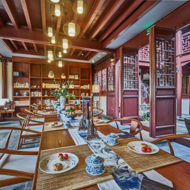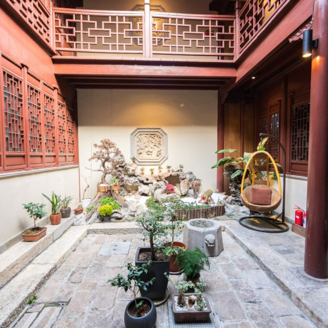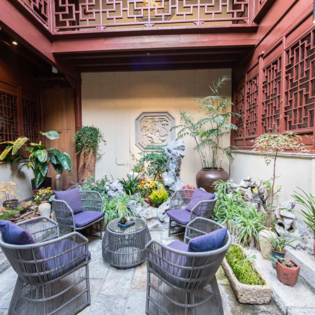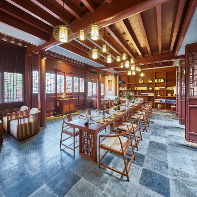 酒店客房的名称也很有意思,都是有典故的。七间客房,分别以“独占鳌头”、“一举成名”、“夺锦之才”、“金榜题名”、“大魁天下”、“蟾宫折桂”、“一鸣惊人”等来命名。都是与科举考试有关,维持了此试馆原有的建设意义。