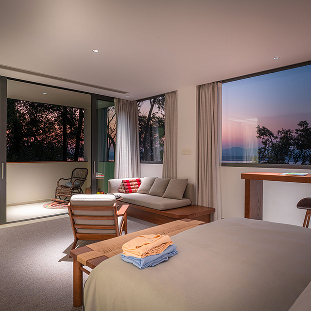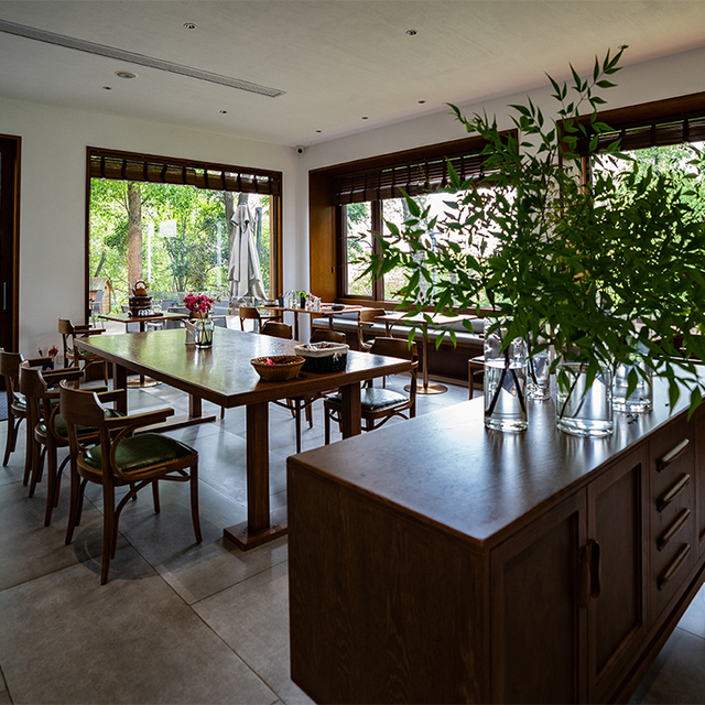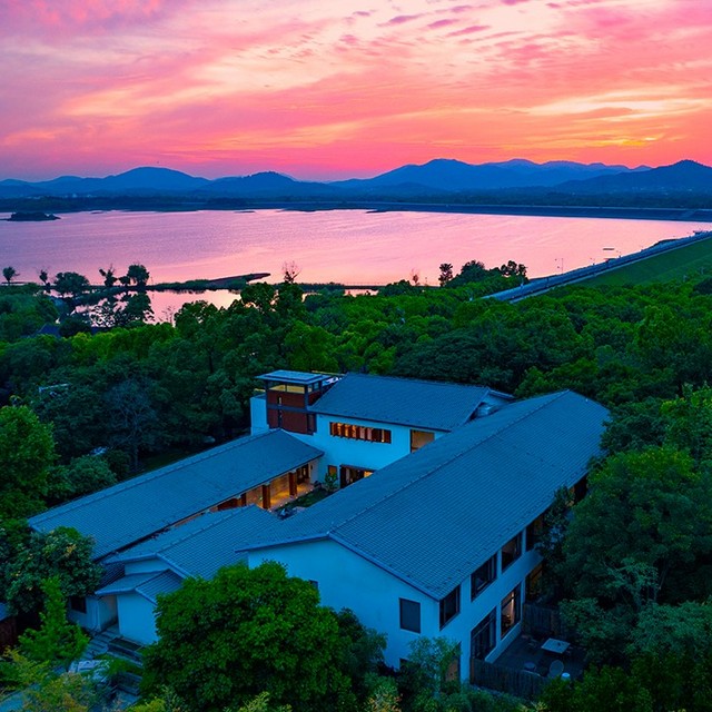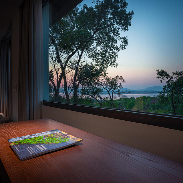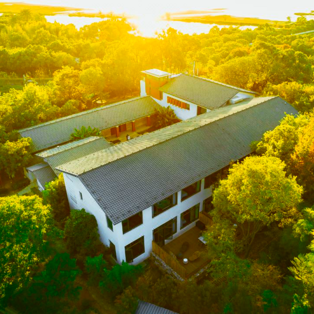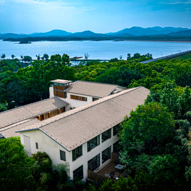 1800㎡小而美的避世居所隐于山野间,以户外泳池为中点,四面设有14间精致客房,部分房型让你足不出户而尽览山色竹海、绚烂湖光。