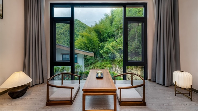每个房间的风景各有不同,可以从不同角度沉浸式感受方岩的自然之美和人文之美“天造方岩迴不群,桥飞岭挂木穿云〞,极富诗画生活。