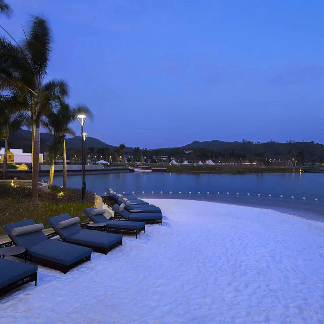除了玩水泡泉之外,还能到湖边的沙滩走走,洁白无瑕的沙滩临湖而立,轻松悠享度假好时光。
