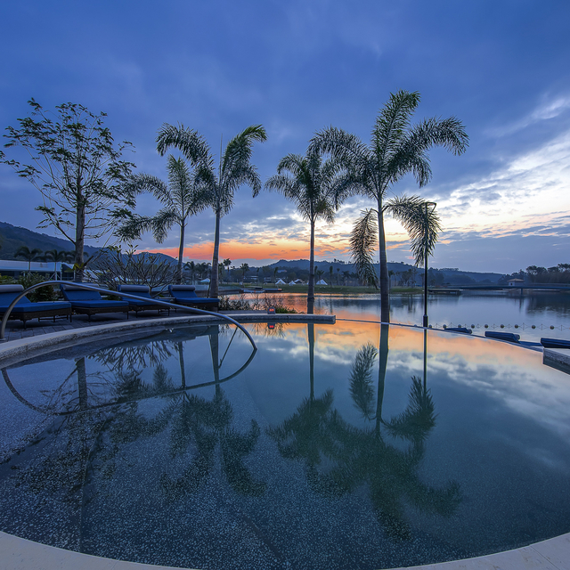 棕榈树酒店的无边际泳池,与湖面相交融,夕阳西下时,远方的湖面波光粼粼,随手一拍就一幅美丽的剪影。在这里游泳,更像是一场与大自然之间的心灵交流。