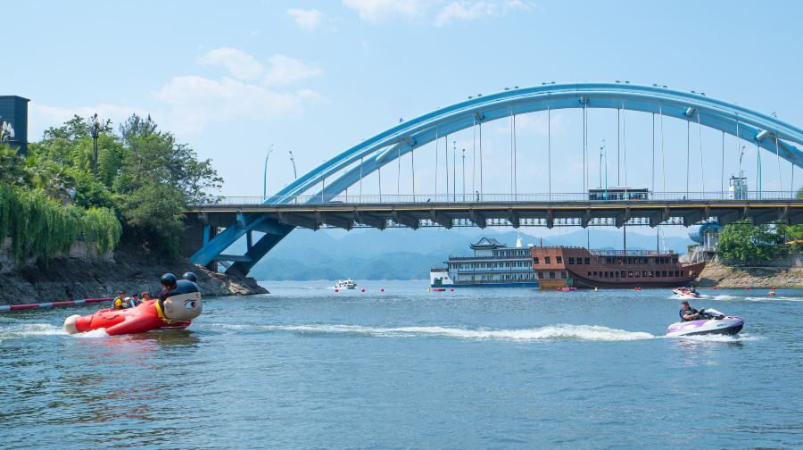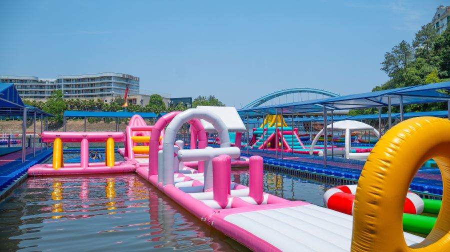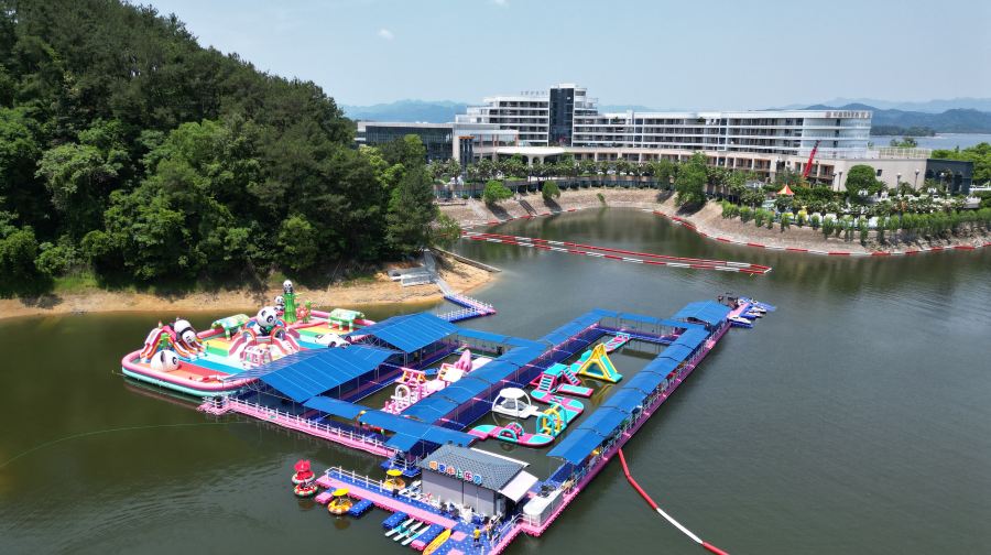 千岛湖中心湖区明豪水上乐园是一个以亲子、亲水、休闲等多元化主题运营的水上乐园,乐园总面积3000平方米,可同时容纳接待游客 800余人,目前运营除有亲子水乐园,成人闯关乐园,水上摩托艇、水上飞人、动力冲浪板、皮划艇、浆板等游乐产品外,还结合明豪酒店特色场内外灯光秀、水幕电影特别推出千岛湖夏季“夜间水上嘉年华”系列活动项目,千岛湖夜间游玩增添新玩法,满足了不同客户群体需求。
