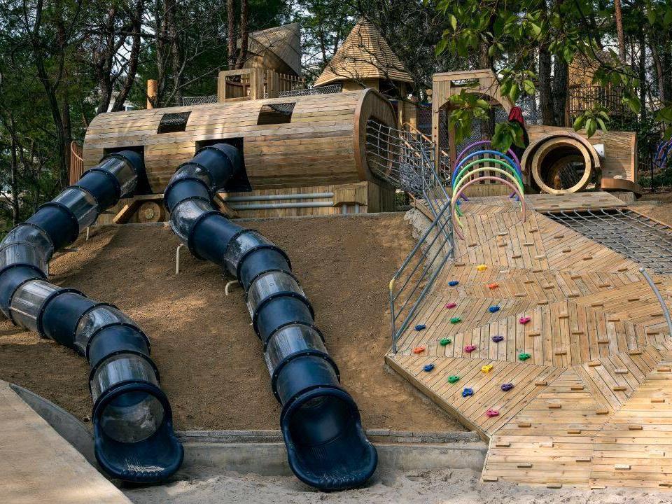 为什么说是溜娃宝藏地?当然是这里含有丰富的亲子游玩。孩子们可以在森森运动场乐园、BOBO萌宠乐园,撒欢玩耍。还可以在沙滩上玩各种欢乐的小游戏。