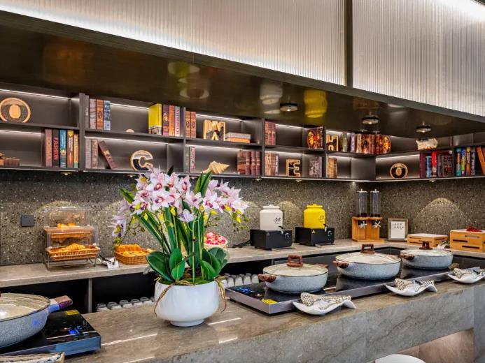 宾馆自助餐厅环境舒适,可同时容纳50个人就餐。自助早餐独具特色,以粤式风味为主打,辅以西式美食,巧妙地融合了东西方的饮食文化。营养热粥温暖肠胃,为新的一天注入活力;现煮粉面,热气腾腾,散发着诱人的香气;美味糕点精致可口,满足着人们对甜食的渴望。无论您是钟情于粤式的传统韵味,还是偏爱西式的别样风情,这里都能满足不同的口味需求,为你的旅程增添一份美好的味蕾记忆。