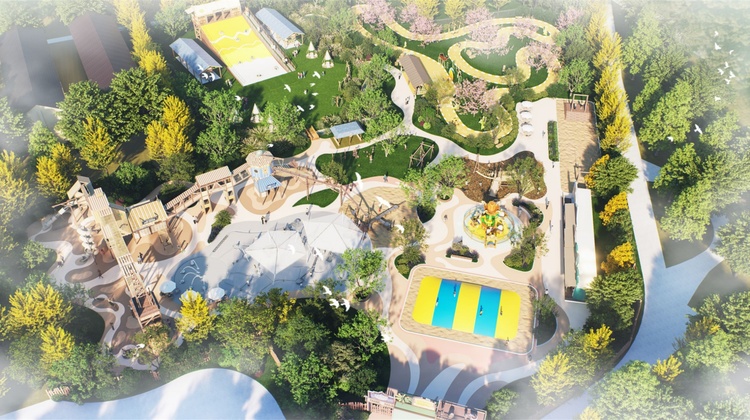淘金小镇寻宝:探索攀爬塔、沙池寻宝、矿井戏水(压水器 / 水风车 / 水闸)、小镇晃绳,低幼友好。