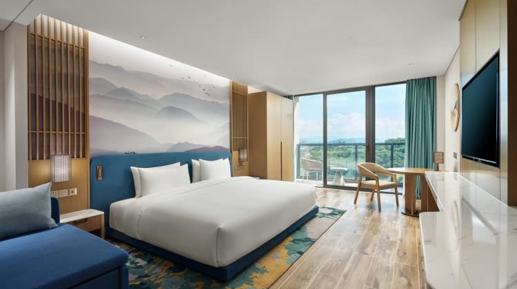 酒店拥有222间客房,而且值得一提的是,这儿房间还自带超大落地窗,不出房门,躺在床上就能眺望远处山山水水。