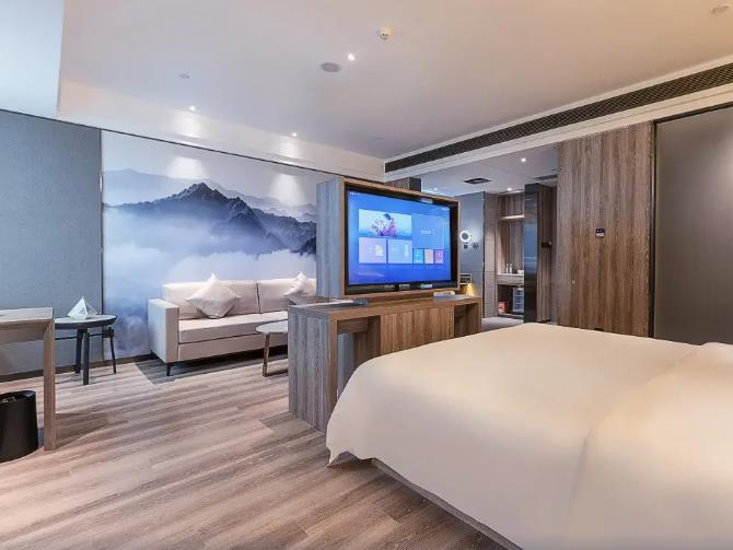 客房设计注重细节,配备衣柜、水吧、沙发等设施,空间宽敞明亮,为宾客营造舒适温馨的居住环境。