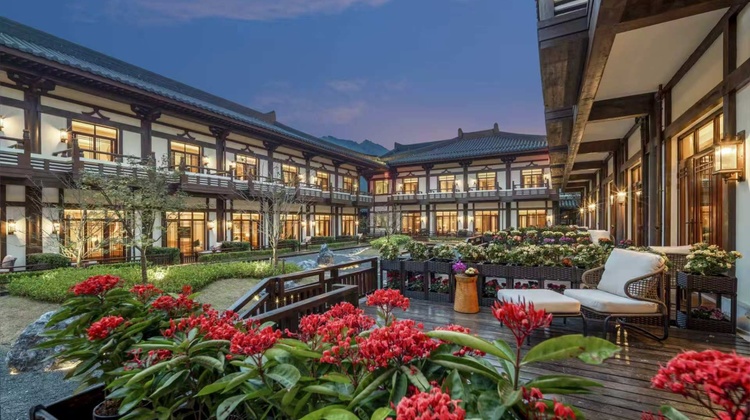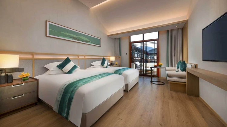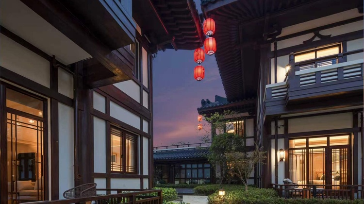 酒店融合“禅、茶、泉”元素,重新演绎了在现代语境下的大唐风格,传统不失奢华。