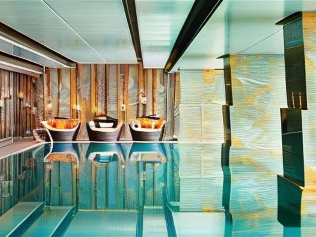 设施完善的健身房拥有引人注目的28米室内无边泳池——全景落地玻璃环绕,营造出凌空畅游的震撼视觉与私密体验。