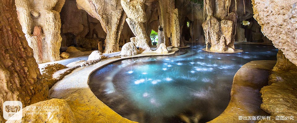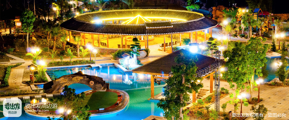 叶园温泉度假村位于广东河源东源县黄田镇,其温泉池区含四大区域:客家围屋区、动感区、养生区和休闲区。68个功能各异的温泉池,精心打造了大型客家围屋休闲区,神秘神山溶洞区、造浪池、水疗SPA池、客家草药池、亲亲鱼疗池等应有尽有。