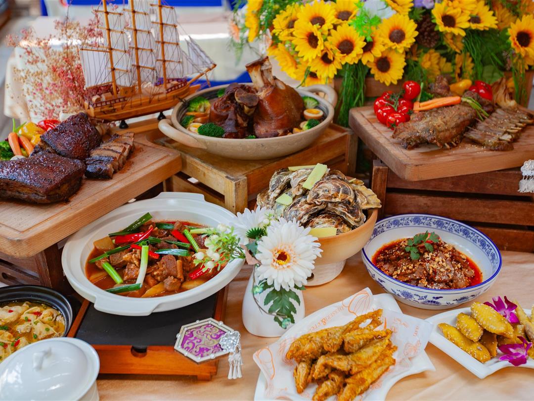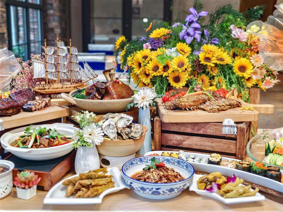 湖畔餐厅每日固定开放自助餐,视季度开放东南亚风味主题、巴西烤肉主题、深海海鲜盛宴主题、地中海风味主题自助餐,包含精选清新沙拉,诱人各式扒类,新鲜海产,中外佳肴及甜品精选。