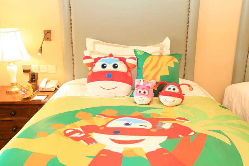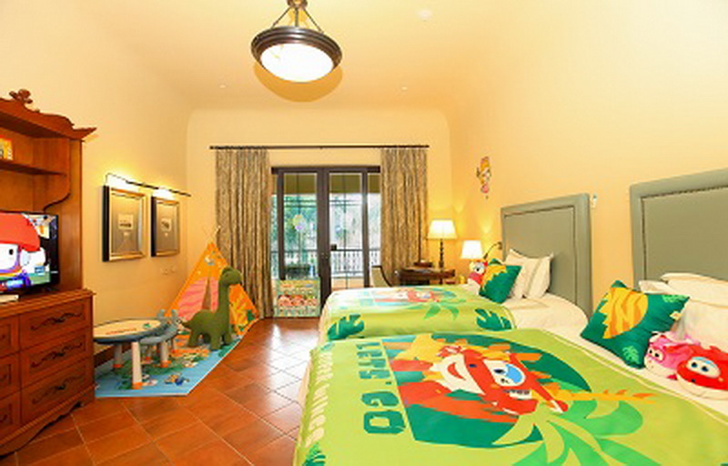 超级飞侠酷芽亲子房是为亲子家庭精心打造的欢乐童趣世界,以特色鲜明的绿色系为基调,从房间布置到床上用品,从儿童玩具到洗漱用品,每一个细节都有超级飞侠的卡通元素,让超级飞侠和它的朋友们伴您和孩子度过难忘的亲子时光。