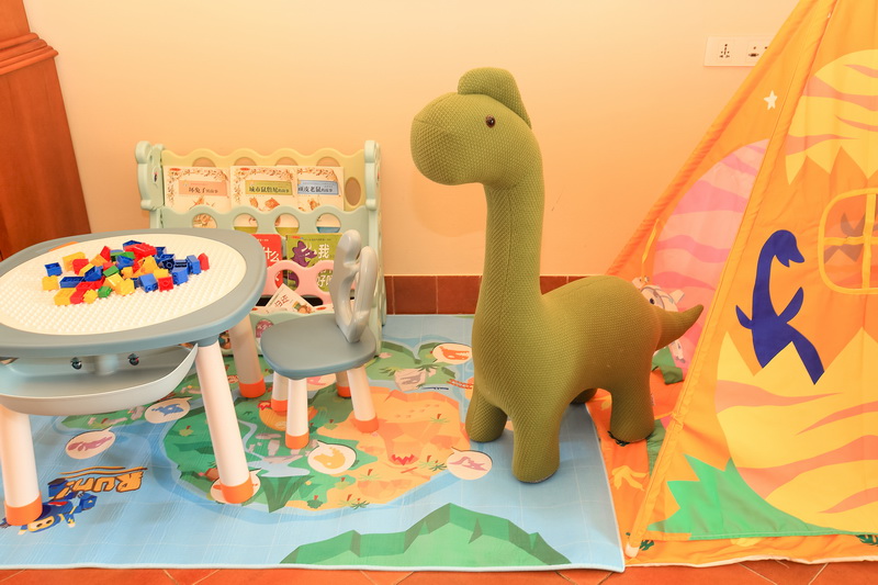 房内还贴心配置了超级飞侠主题小恐龙、拼图桌、故事书等儿童专属玩具,为孩子打造了一个欢乐的小天地,彻底释放孩子的玩乐天性。