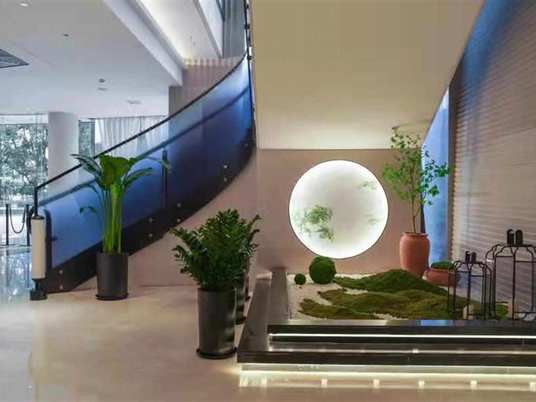 整个园区以露天公园为总体设计,环境布局结合了东南亚风情园林元素,珙桐、银杏和树化石随处可见;温泉池被密密的树丛包围,只留下一小部分作为出入口,私密性有所保障。